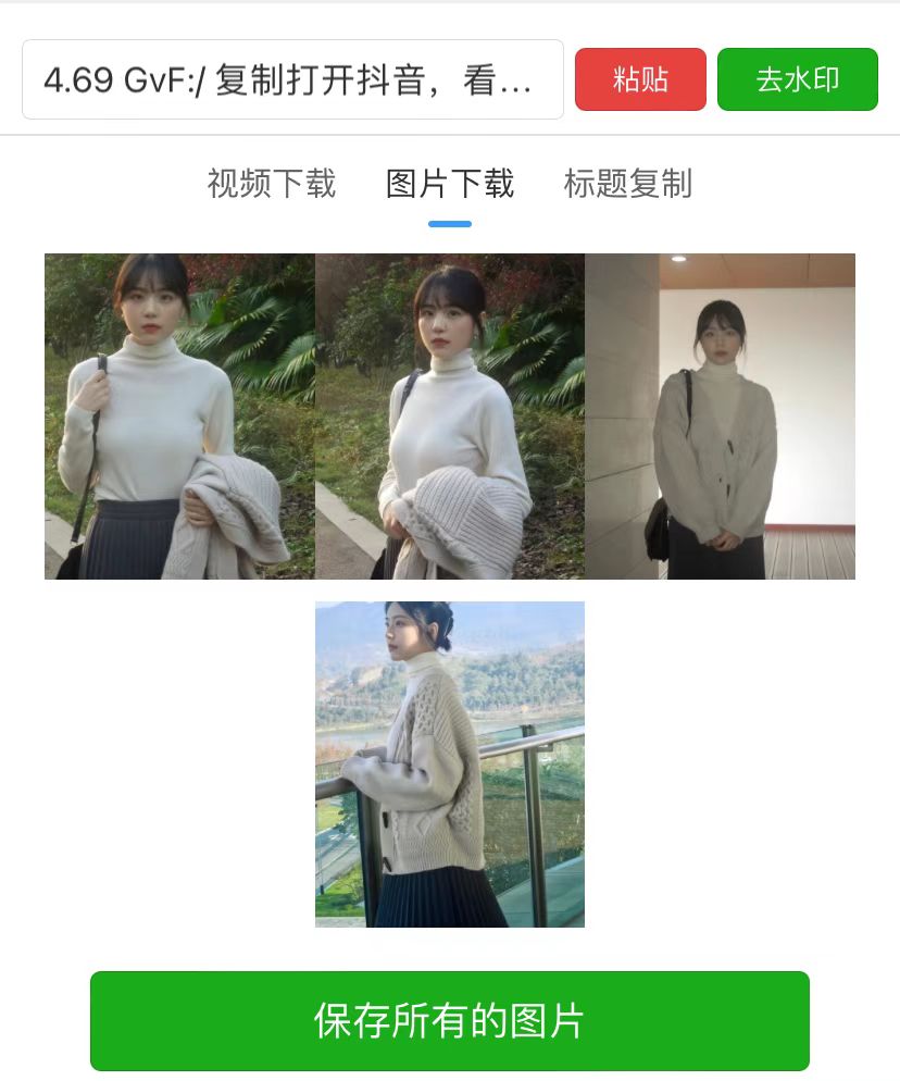 除了解析抖音视频之外,该小程序还支持解析抖音图文。如下图:
